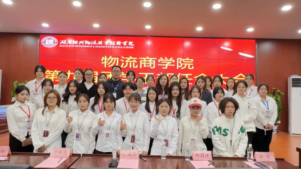 2025年11月28日19点,为进一步加强组织建设、明确干部职责,物流商学院第九届团学干部任命大会于明德楼四楼会议室庄严召开。物流商学院院长旷健玲、学工办主任郑朴生、团总支书记何莉洋、师生联合党支部书记高璐、辅导员李芳及全体团学干部共同出席了本次大会。会议由会计2405班陈宣彤主持。