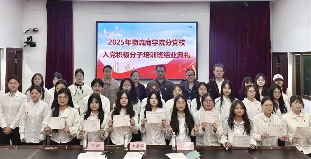 为深入学习贯彻习近平新时代中国特色社会主义思想,2025年12月12日,物流商学院分党校在笃行楼学术报告厅隆重举行2025年入党积极分子培训班结业典礼。学院党总支支委、师生联合党支部支委、分党校全体学员、学生会青马社学生干部及2025级部分班委干部参加了典礼。